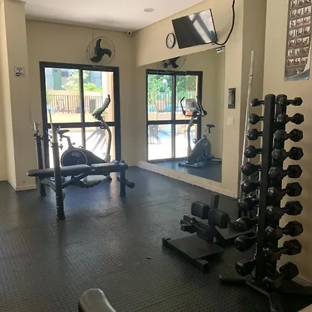 O Lugar! Apto No The Place配有健身课程,健身中心 和室外游泳池等休闲设施.